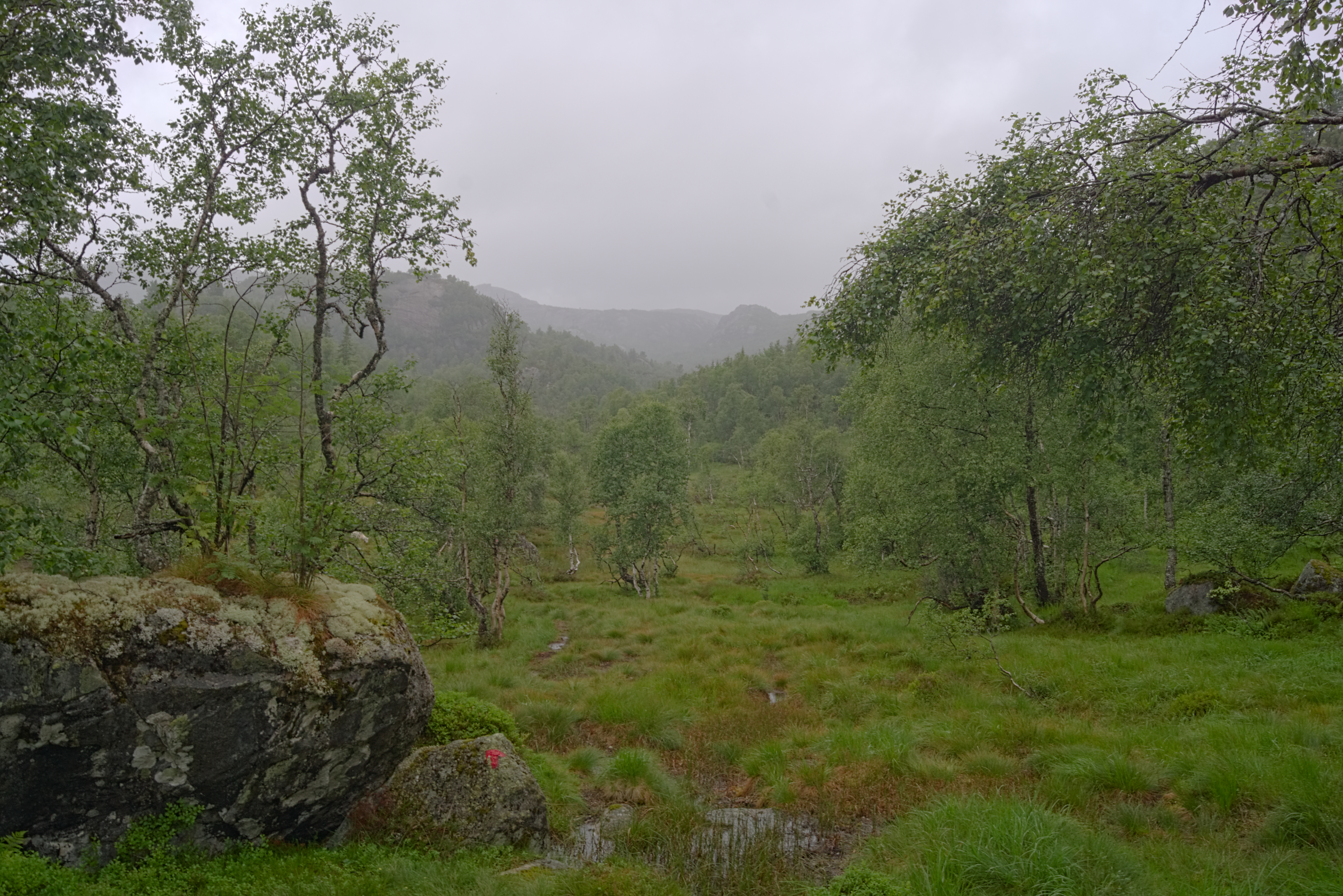 My journey started in the forest, after a lot of rain had fallen the day before. Everything was green and wet wet wet. Finally, I reached my first stop, at a cabin which was far from everything.