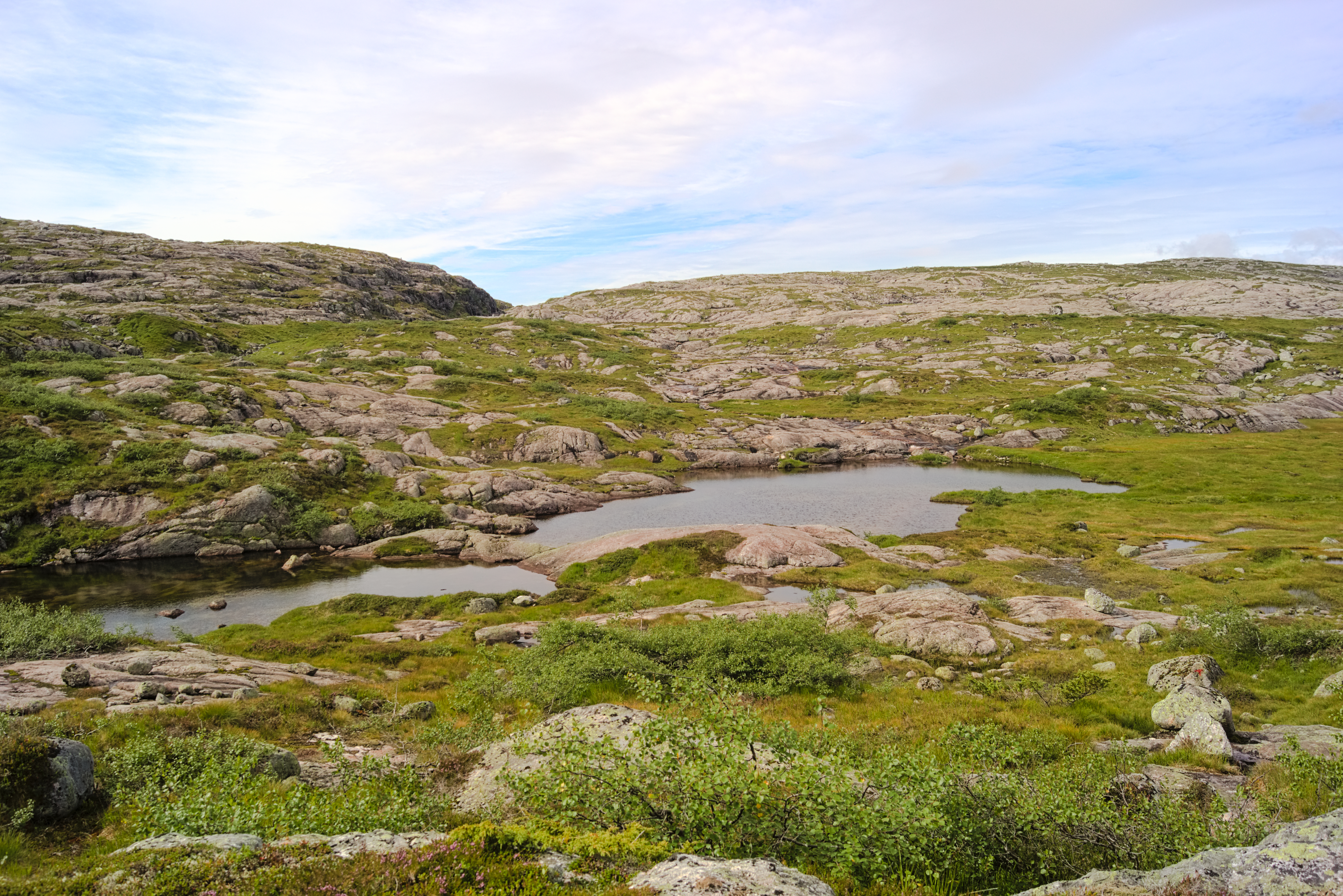 The next leg of the journey was in the sunlight, and passed many large lakes. Because it was dry, I set up the tent beside a lake and had a wonderful night outside. The wind picked up, and the temperature dropped to 5C, though. It bit cold for my thin summer sleeping bag.